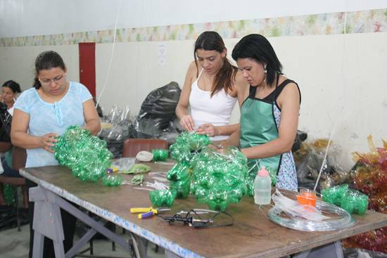 Bonecos de neve, árvores de Natal e papais-noéis estilizados ganharão as ruas e praças de Cubatão a partir do dia 18. A decoração de final de ano, confeccionada com material reciclável, além de ter um custo menor para o município e ser ecologicamente correta, também vai garantir um Natal mais feliz para 16 mães que são chefes de família. Elas foram contratadas pela Prefeitura para trabalhar na elaboração de 13 peças com até sete metros de altura, além de cerca de outros 300 enfeites natalinos. Cada uma das artesãs (todas ex-alunas da Fábrica da Comunidade) receberá R$ 1.200,00 por dois meses de atividade.