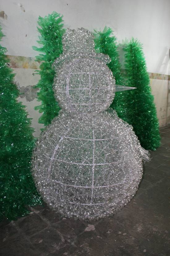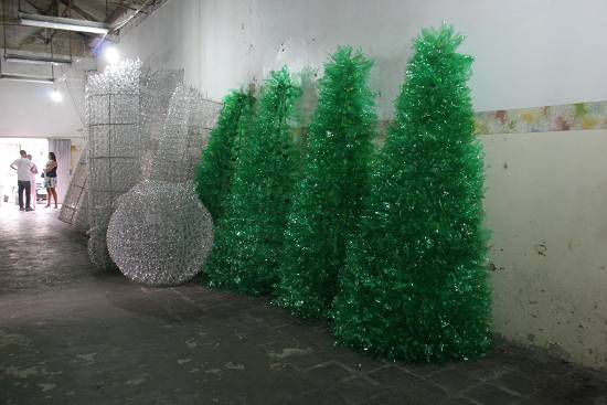 “Estamos utilizando apenas material reciclável”, frisou Polyana. Garrafas pet de refrigerantes dão forma a galhos e folhas das árvores de Natal. Também são empregadas na confecção dos gordos bonecos de neve, alguns com até quatro metros de altura. “As pessoas vão se surpreender com o belo efeito”, promete Polyana. Também estão previstas velas gigantes e guirlandas, devendo todas as peças estar expostas para conhecimento público até o dia 28 de novembro.
