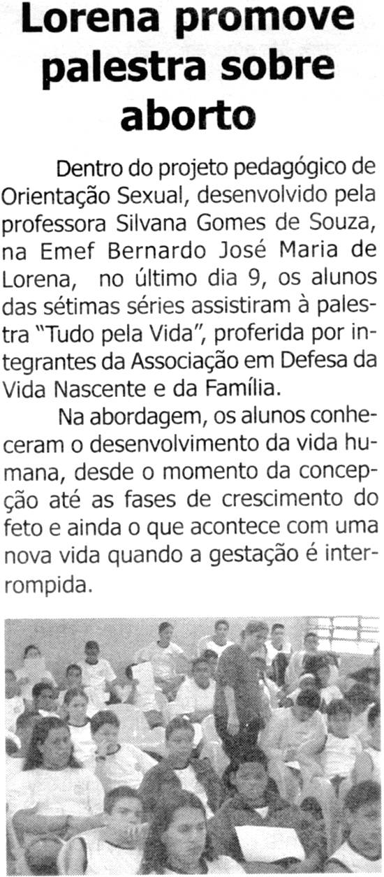 a palestra sobre o tema Aborto, proferida pela Sra. Cecília Passareli,
