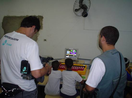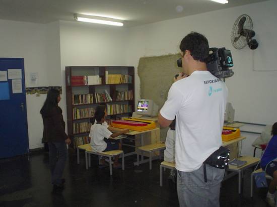 de imagens em salas de aula e corredores, por uma equipe da TV