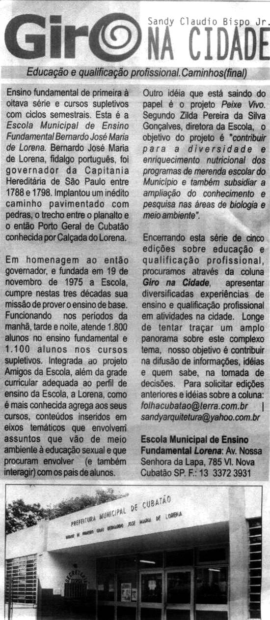 Publicado no jornal Folha de Cubatão, edição de 15 a 21 de outubro de 2004, na coluna Giro na Cidade: