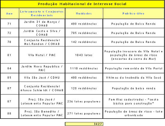 Exigüidade de áreas livres disponíveis para implantação de projetos habitacionais;