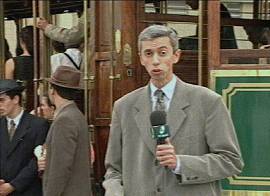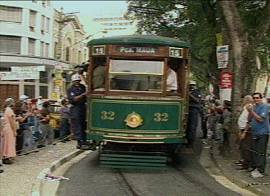 O telejornal Mar em Manchete, na edição noturna, apresentado a partir das 19h09 de 23/9/2000 na TV Mar, de Santos, mostrou inicialmente imagens do bairro do Valongo, com os preparativos para a saída, tendo como passageiros um grupo caracterizado com trajes do início do século XX. Às 16h05, o bonde iniciou a viagem, passando em alta velocidade defronte ao histórico prédio da Bolsa do Café e chegando logo depois à praça Mauá, onde ocorreu a festa principal. A última imagem é do religioso da Igreja do Valongo, frei Rozântimo, que abençoou o bonde e participou da viagem inaugural.