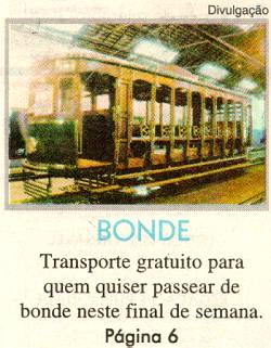 Passeios - Quem quiser fazer uma viagem no bonde, não irá pagar durante este final de semana. O