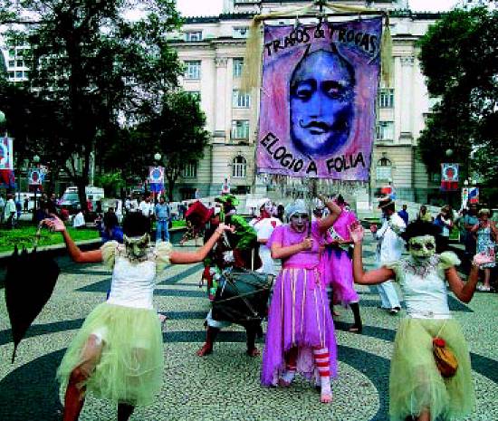comemorações carnavalescas da Secretaria de Cultura (Secult). A apresentação do Orgone Grupo de Arte movimentou a Praça Mauá no horário de