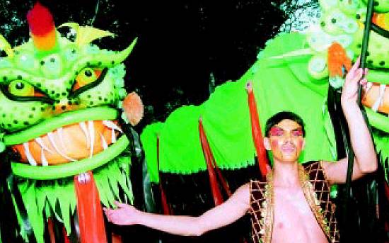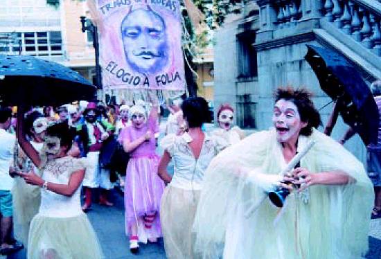 carregando um imenso dragão -, atores do Orgone Grupo de Arte, participantes da Escola Livre de Artes Cênicas e do bloco Amigos da Solidariedade,