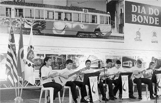 trajetória da marca turística de Santos e do meio de transporte que simboliza o renascimento do Centro Histórico. Até o final do primeiro semestre