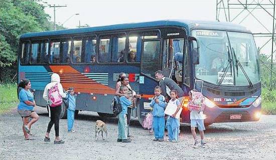 ônibus que leva e traz crianças da escola são motivo para diversão da garotada