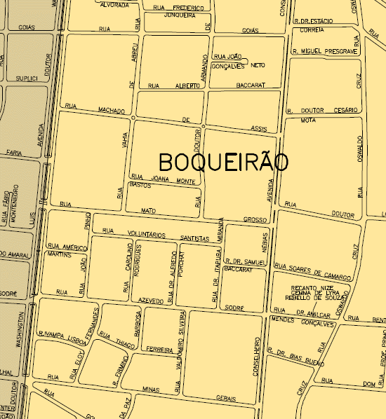 Quadrilátero entre a Avenida Conselheiro Nébias, Rua Minas Gerais, Avenida Washington Luiz e Rua Machado de Assis, no Boqueirão.
