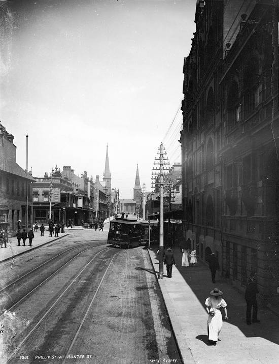Ruas Phillip e Hunter, em Sydney, cerca de 1900