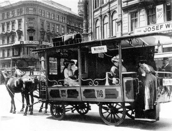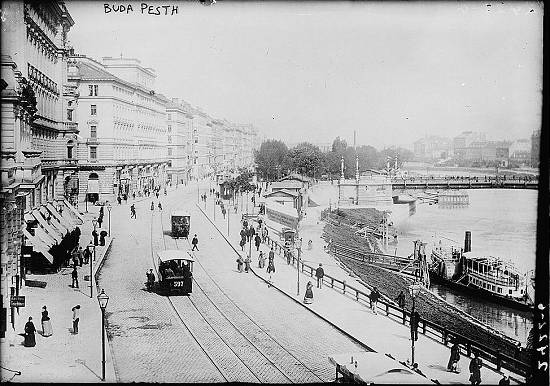 Austro-Hungaro, bondes elétricos circulam junto ao cais Francisco José (Quay Freancis Josseph), em Viena. A imagem foi erroneamente identificada