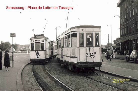 Bondes na estação central de Strasbourg, em agosto de 1947