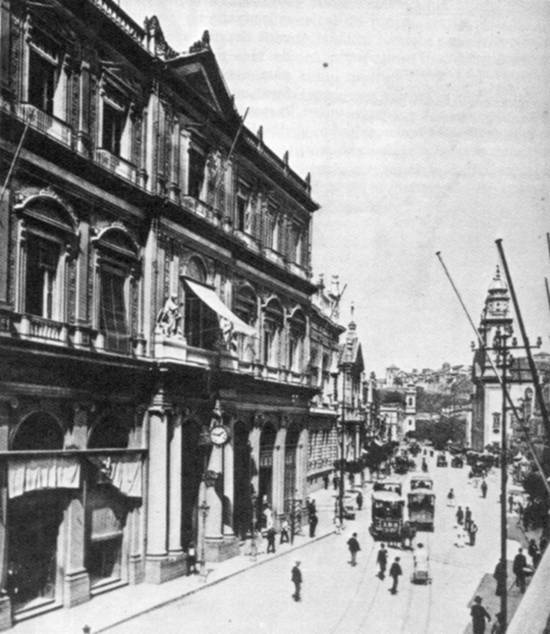 A segunda imagem retrata o Largo da Carioca, no centro do Rio de Janeiro, na segunda década do