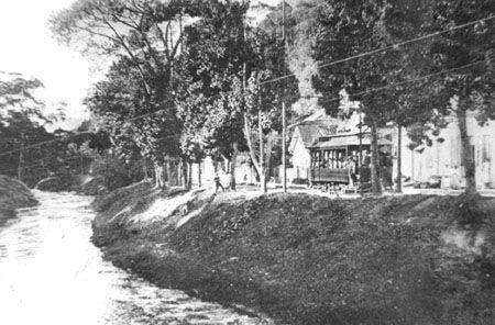 Bonde na Av. Barão do Rio Branco, na linha de Cascatinha