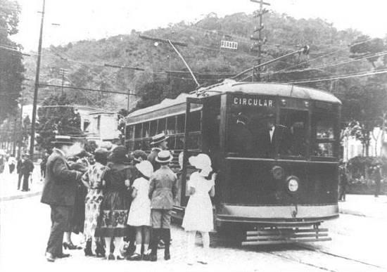 Foi bastante curta a história dos bondes em Petrópolis, interior do estado do Rio de Janeiro: começou em 1912, já com veículos elétricos, como se vê na foto acima, de autor desconhecido, tomada na inauguração da via.