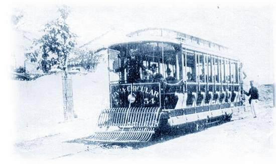 Na foto acima, bonde elétrico prefixo 54 em linha circular no início do século XX. A imagem