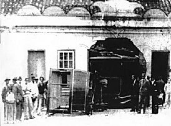 com bitola métrica e 4 km de extensão, na rua principal. As iniciais do proprietário (APA) podiam ser vistas nas laterais dos veículos,
