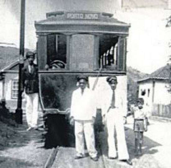 Abaixo, bonde do Porto Novo.
