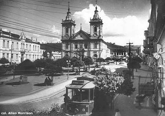 Praça São Benedito e a superior, da coleção do pesquisador Allen Morrison, de New York, mostra a antiga Matriz.
