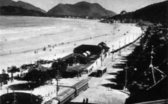 Nas fotos desta página, os bondes elétricos que circularam de 1925 a 1956 e a estação na Praia de Pitangueiras.