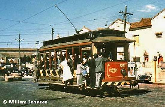 foto acima, de 31/1/1957, vê-se o bonde de prefixo 551 circulando na linha 17.