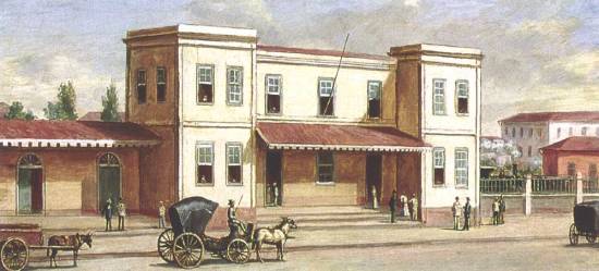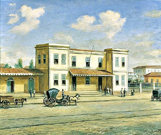 Mauá, e em 1900 foi demolida para a construção da atual, que ganhou entrada principal virada para o Jardim da Luz. No quadro de Calixto, baseado em