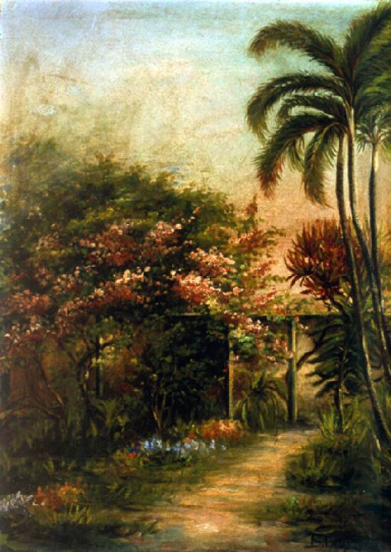 Local muito popular no início do século XX, o Parque Indígena mantido por Júlio Conceição no bairro do Boqueirão, em Santos - que após a sua morte daria origem ao atual Orquidário - teve um de seus recantos escolhido por Calixto para esta tela não datada, pertencente a uma coleção particular (óleo sobre tela, 53 x 58 cm):