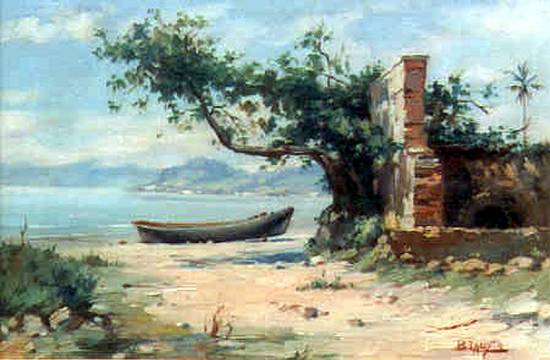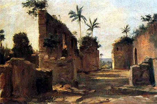 Com o título Ruínas do Abarebebê, este óleo sobre tela de 27,5 x 41 cm, sem data, pertence a uma coleção