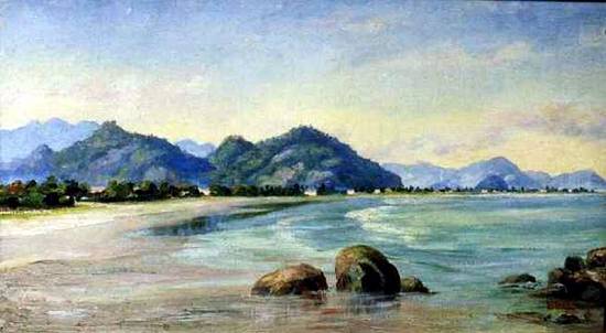 Também não datado, este óleo sobre tela de 53,5 x 100,5 cm tem o título de Marinha - Praia de São Vicente e