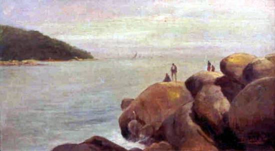registra a costa rochosa da Ilha das Palmas e a Ponta do Munduba, em Guarujá - uma imagem encontrada também nesta