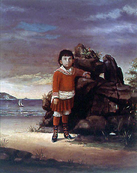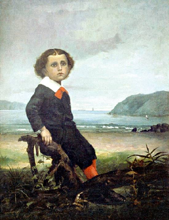 Menino na praia, não datado, é um óleo sobre tela com 80 x 62,2 cm, mantido em uma coleção particular: