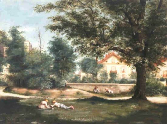 e históricos, marinhas e naturezas mortas. Sua produção também inclui quadros como este Longe do Lar, não datado, um óleo sobre tela medindo 32 x