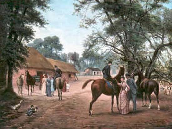 Não datado, este óleo sobre tela de 65,5 x 85,5 cm tem o título Passeio a Cavalo e pertence a um
