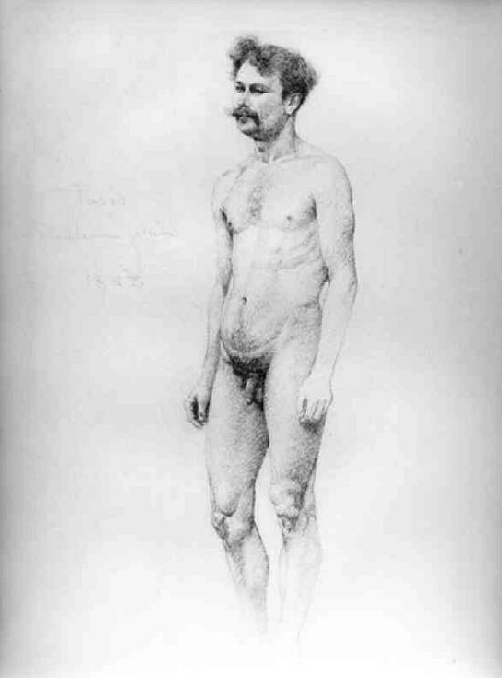 Estudo de Academia - Nu Masculino - 1883, com 59 x 45,2 cm, mantido em coleção particular