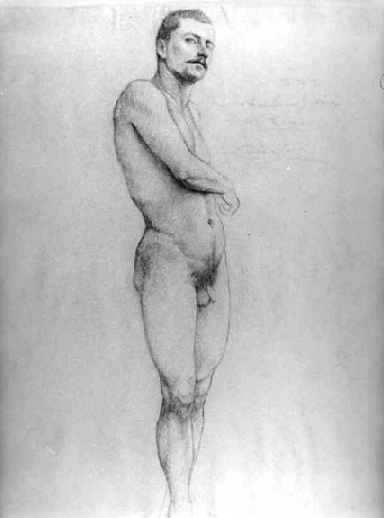 Estudo de Academia - Nu Masculino - 1883, com 61,5 x 46,1 cm, mantido em coleção particular
