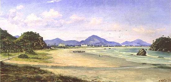 de São Paulo Assis Chateaubriand), mostra a divisa municipal entre Santos e São Vicente, com a praia do José Menino e à