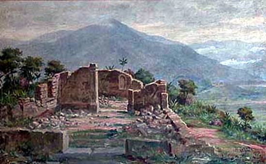 pintado em 1914, com 29x56 cm, pertence à coleção do Instituto Histórico e Geográfico de São Paulo. Nele, Calixto colocou a legenda explicativa: "Ruínas