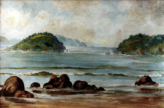 Igualmente de 1905 e conservado em coleção particular, este óleo sobre tela de 27,2x 49,9 cm é intitulado Ilha Porchat - Pedra Redonda: