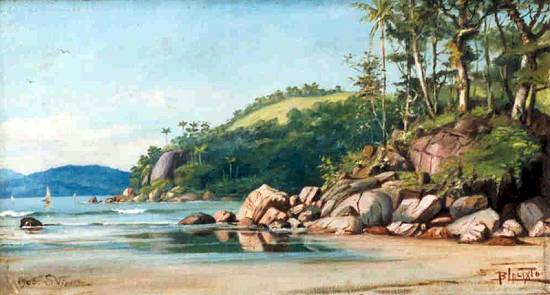 Já este óleo sobre tela, de 43 x 70 cm, foi pintado em 1908, com o título Recanto da Ilha Porchat - Marina, pertencendo a uma coleção particular: