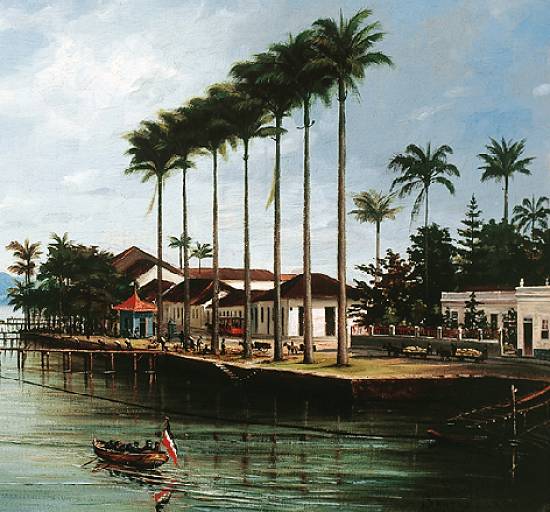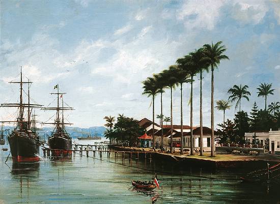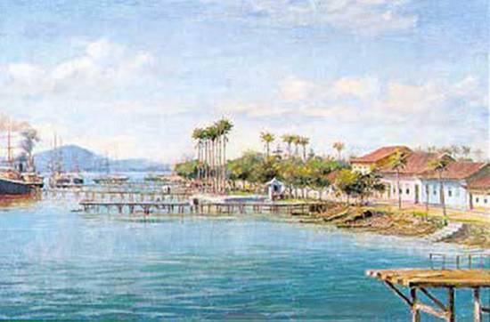 Outra reprodução fotográfica desse quadro, denominado Porto de Santos em 1890: