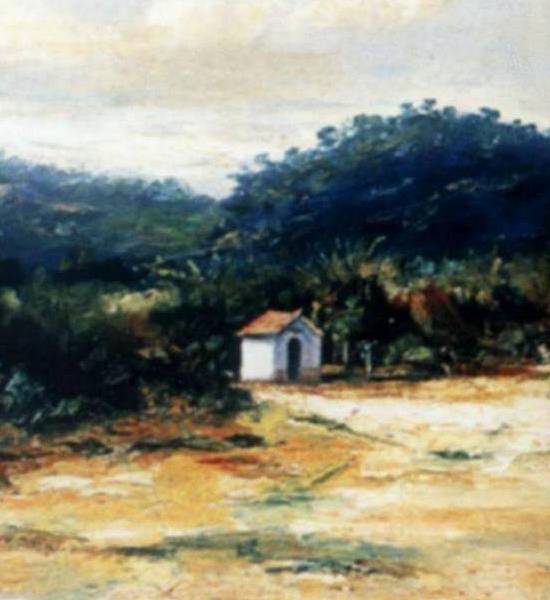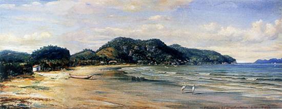A praia bertioguense de Indaiá foi registrada por Calixto em 1917, neste quadro a óleo sobre tela, que mede 51 x 132 cm e pertence a uma coleção particular: