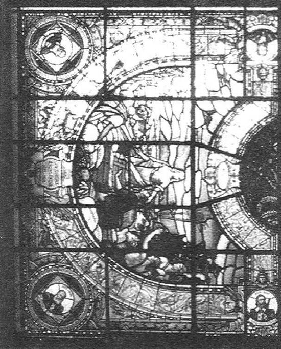 trabalho envolveu uma técnica diferente: é um vitral no teto da sala de pregões da Bolsa do Café de