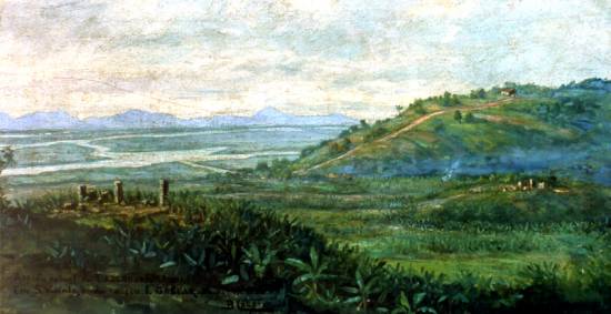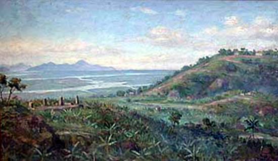 Em 1917, Calixto voltou àquele local - o sítio Acarahu - e pintou este óleo sobre tela (35x58 cm, pertencente a uma coleção particular), denominado Ruínas do Solar de Fr. Gaspar da Madre de Deus II (o quadro I é a vista mais próxima das ruínas da capela):