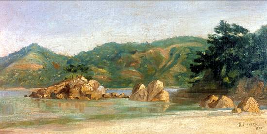 No mesmo local, em 1920, Calixto produziu este óleo sobre tela com 28x49 cm, preservado em coleção