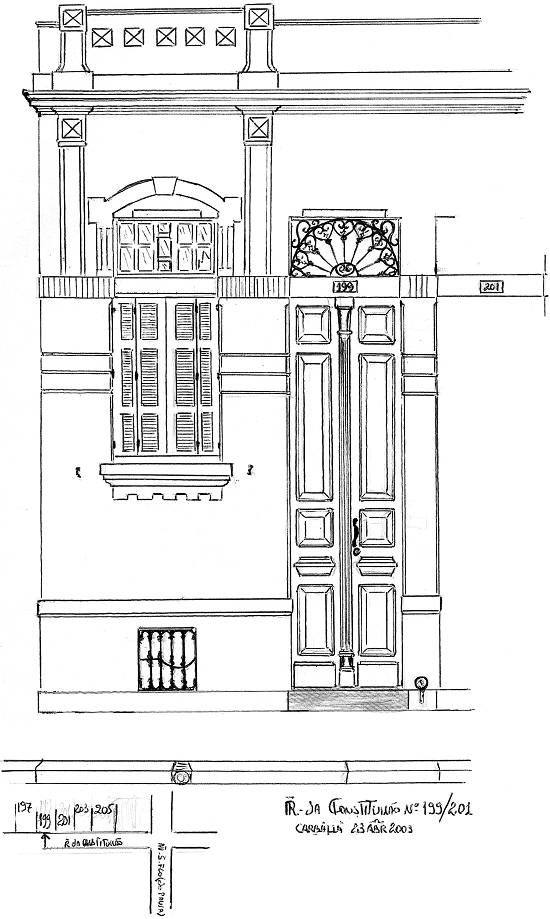 Rua da Constituição, 199/201. Desenho feito em 23 de abril de 2003. Há imagens das