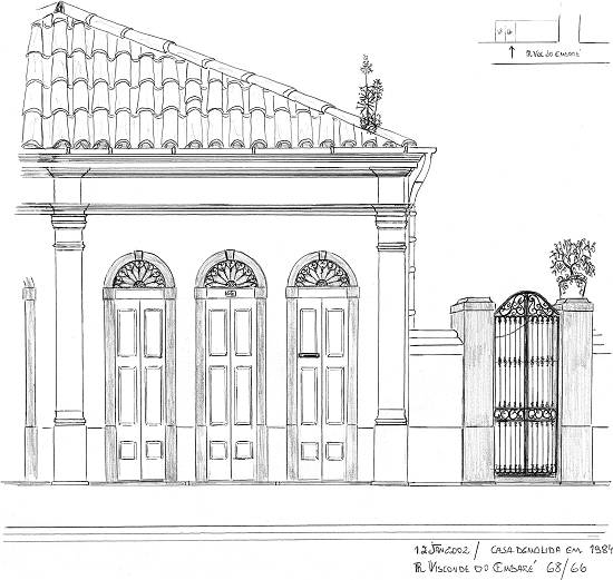 Rua Visconde do Embaré, 68/66, casa demolida em 1984. Desenho feito em 12 de janeiro de