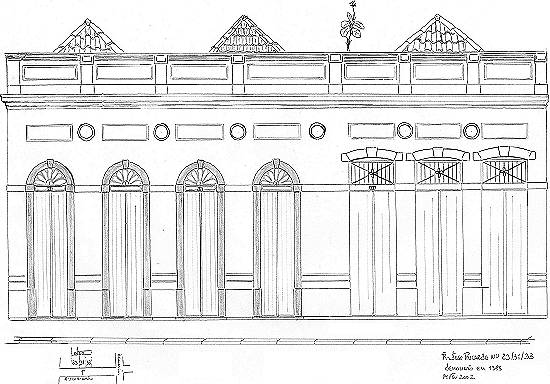 Rua José Ricardo, 29/31/33, trecho demolido em 1985. Desenho feito em 14 de fevereiro de 2002