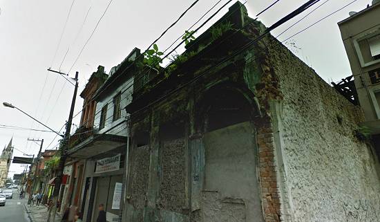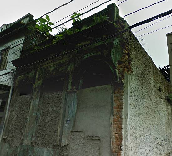 Rua Braz Cubas, 34/32, com a frente quase destruída, sendo que a edificação do número 32 foi demolida na década de 1960