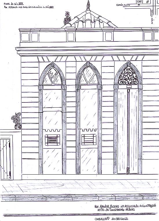 Rua Amador Bueno, vizinho do prédio 382-B.Edificação associada à construção de número 93 da Avenida Conselheiro Nébias. Esta edificação do final do século XIX foi alterada na década de 1960 e nos primeiros anos do século XXI. Possui internamente um andar superior, funcionando uma carpintaria no pavimento térreo. O desenho de 2012 reproduz a visão do autor antes das mudanças