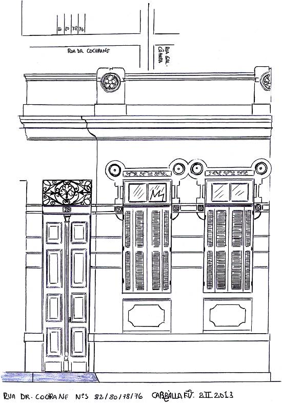 Rua Dr. Cochrane, 82, 80, 78 e 76. "Conjunto de casas que teve seu porão inabitável reaproveitado por reformas, com o rebaixamento do piso no quarto da frente, como no caso do nº 80, onde funcionou a quitanda do sr. Silvio e dona Rosa, ambos portugueses, até os anos 1980; depois foi dada outra utilidade ao local, inclusive sendo usado como cortiço" (2/2/2013)